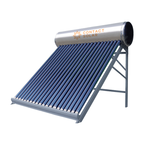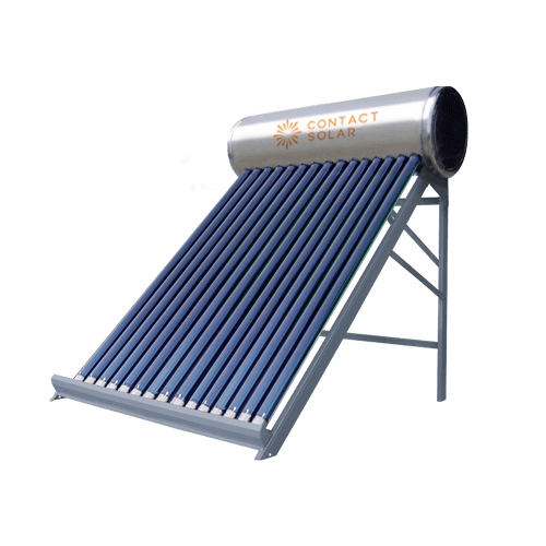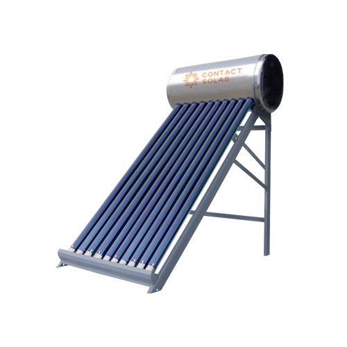 Los termotanques solares funcionan mediante un proceso llamado termosifón. El agua fría ingresa en el termotanque y recorre los tubos de vidrio. A medida que el agua se calienta sube naturalmente y se almacena en el tanque. Este proceso es continuo mientras la radiación solar es captada por el colector. Esta Linea de terrmotanques solares funcionan por gravedad, debiendo instalarse en altura para asegurar la presión de agua. Pueden trabajar con hasta -5°C.